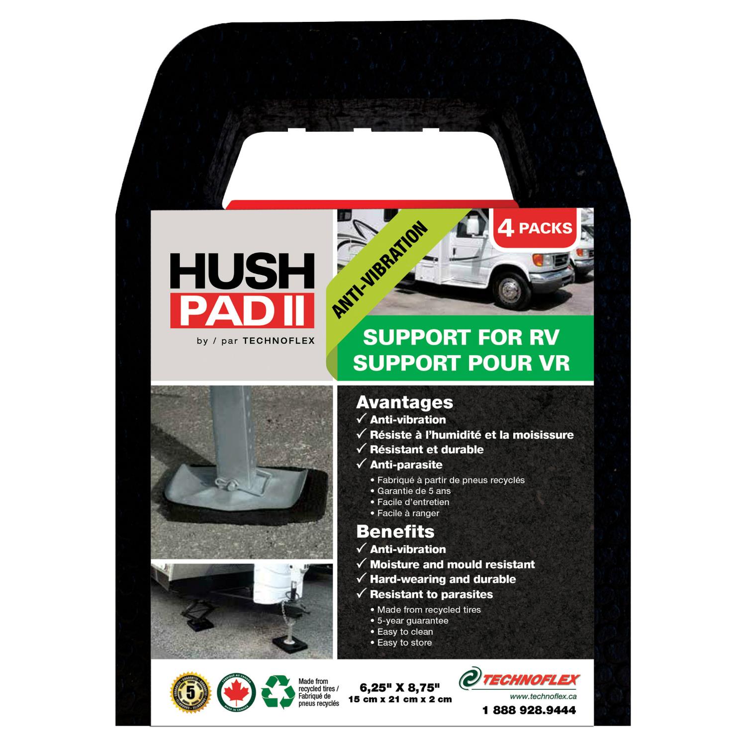 Hush Pad II is a support for any type of RV. Made from 100% recycled tires it is extremely resistant and is designed be used under the stabilizer and will support any weight. The hush pad offers you an anti-vibration support to give the best comfort and prevents the jacks from sinking. They are specially designed to withstand extreme weather conditions.
