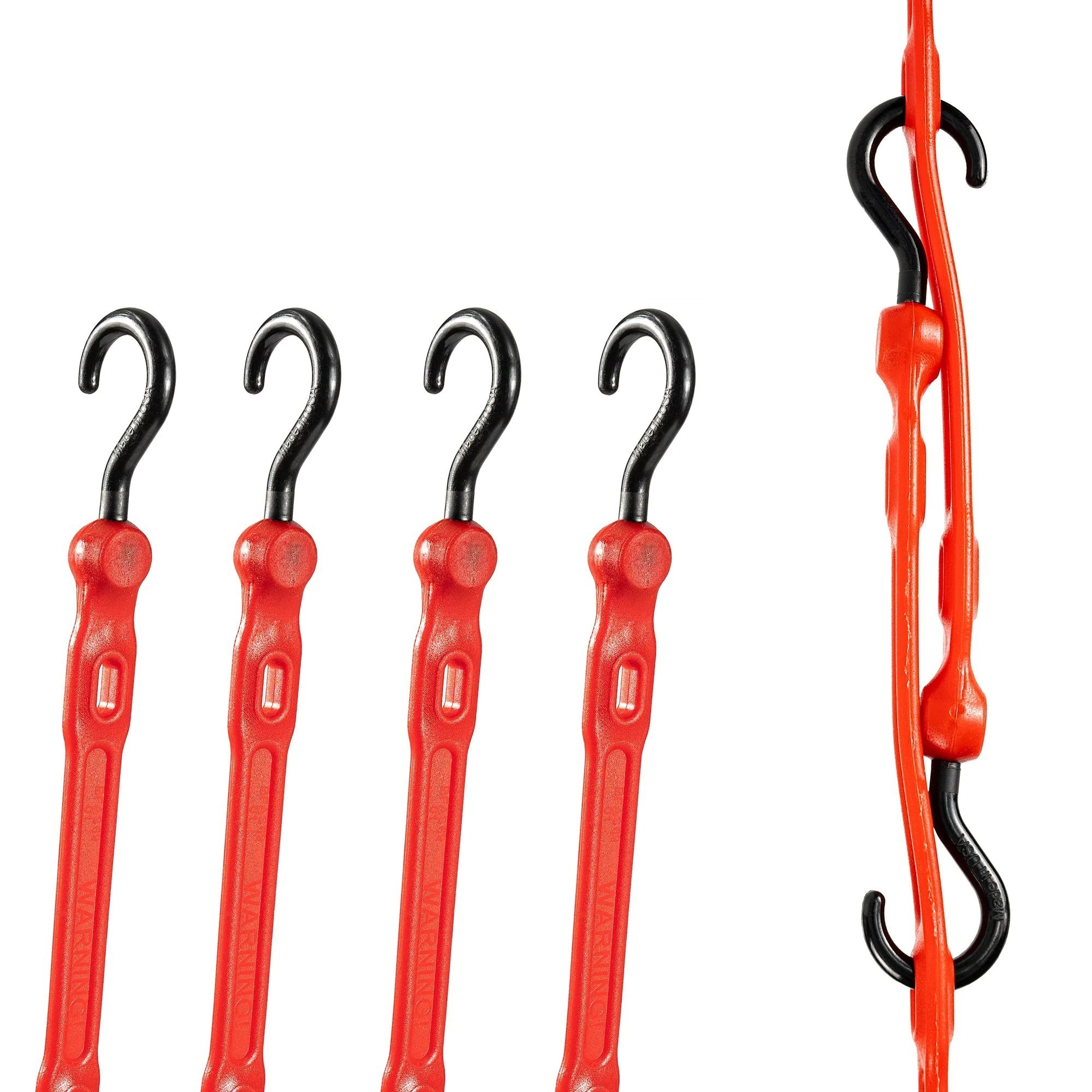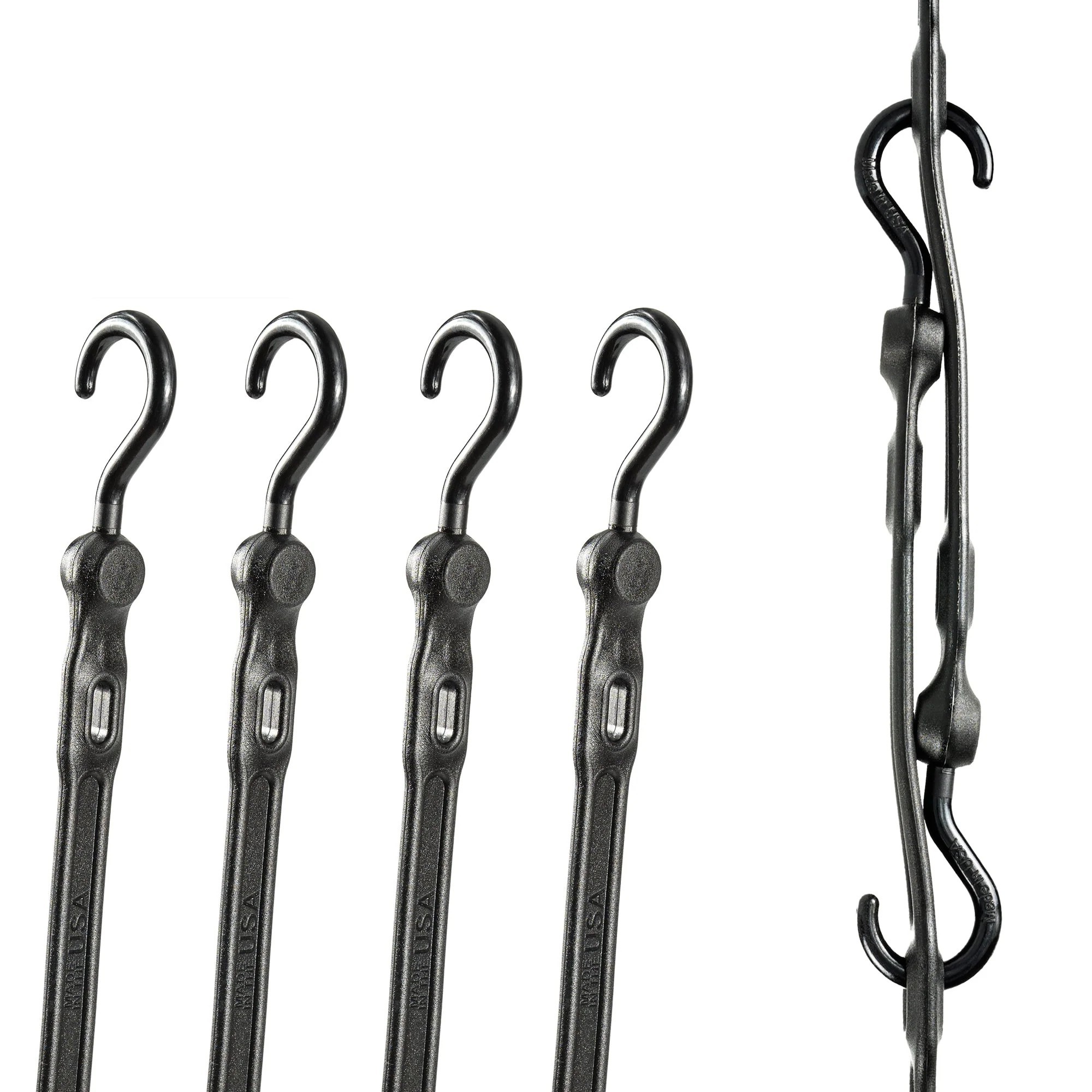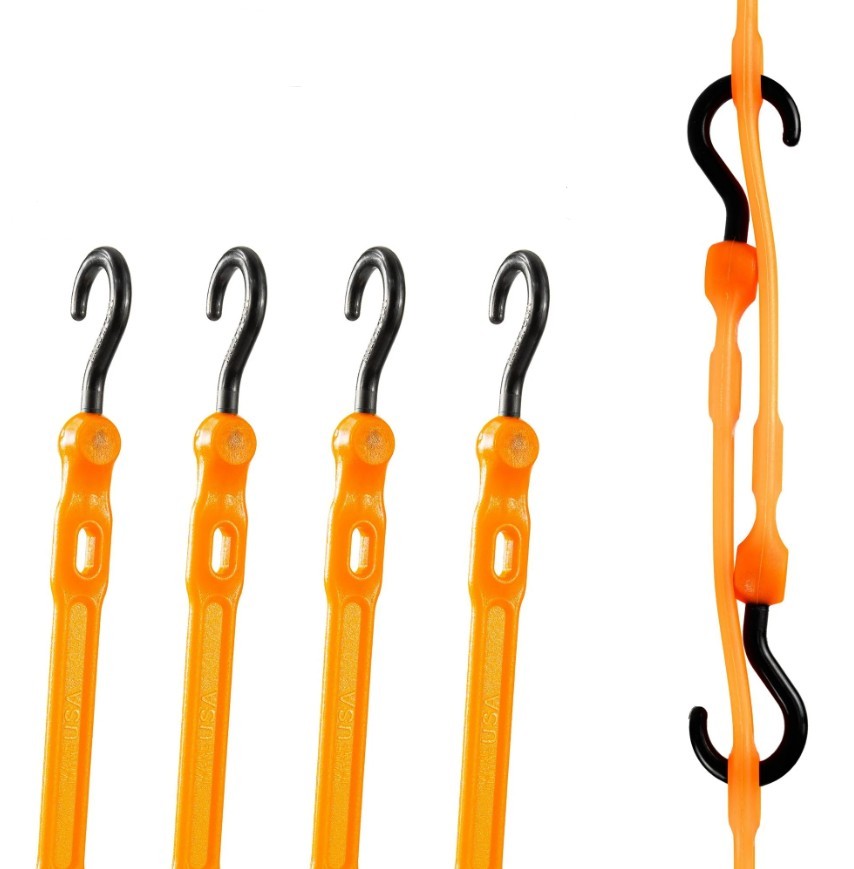 Adjust A Strap is an adjustable, slotted bungee designed for versatile securing, bundling, and organizing tasks. Made from premium polyurethane, it delivers long lasting performance without fatigue or bungee blow out, making it a reliable alternative to traditional rubber bungees. Six integrated slots along the strap allow fast adjustment and multiple hookup points to fit a wide range of cargo and applications. Each strap features marine grade, glass reinforced nylon hooks that are non marring, helping protect surfaces while providing secure attachment. UV stable, waterproof, and weather proof construction ensures dependable performance in any environment. Proudly Made in the USA.