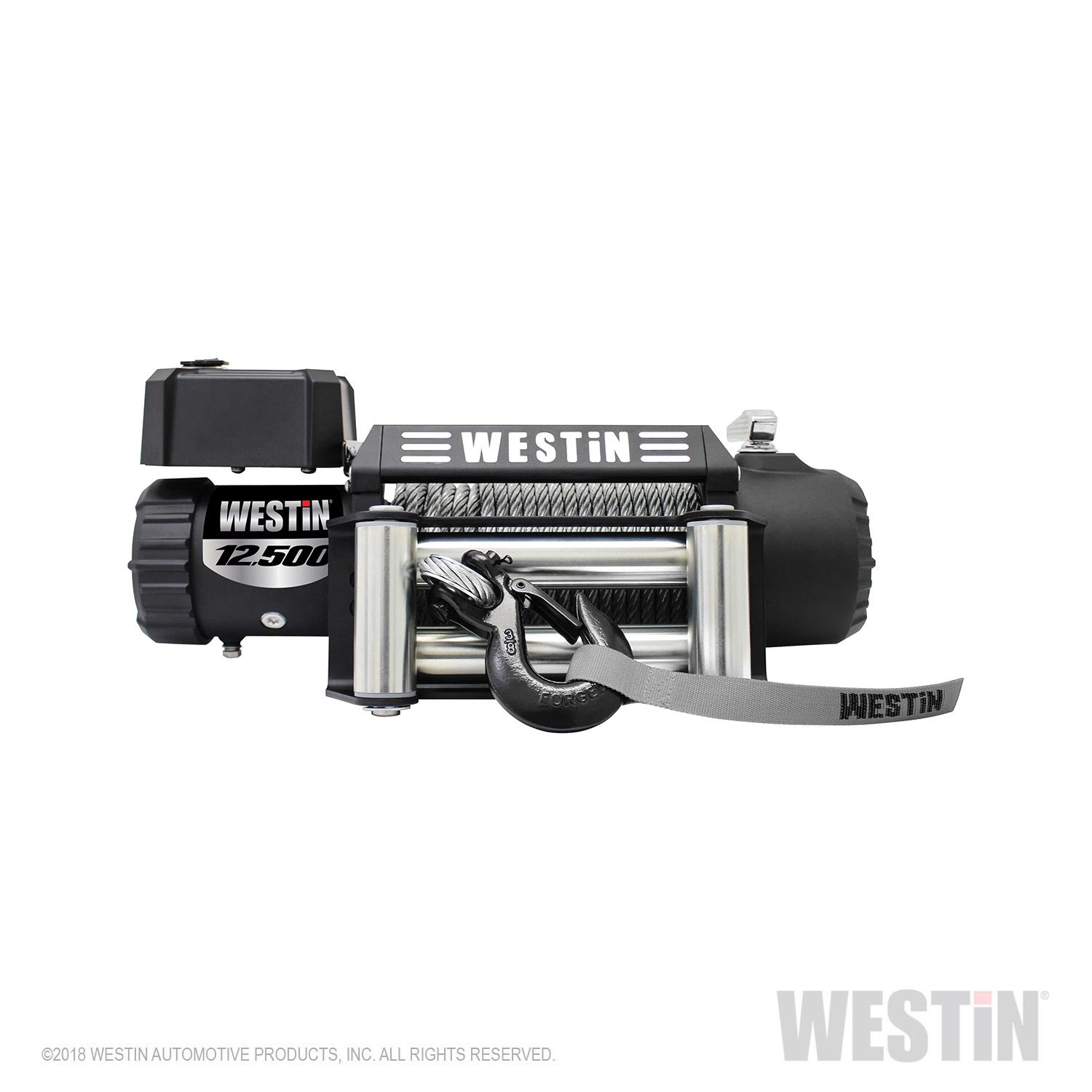 Westin Off-Road 12.5 Waterproof Winch with steel rope is extremely durable boasting 12,500 lbs rated single line pull. It is equipped with a 6.6hp 12V Series Wound motor that delivers high power and torque with a gear ratio of 193.2:1. It features an IP67 rated waterproof black housing and includes a corded controller, fairlead, clevis hook, and clevis flag. Westin’s Off-Road 12.5 Waterproof Winch is backed by a 3 year warranty for mechanical components.