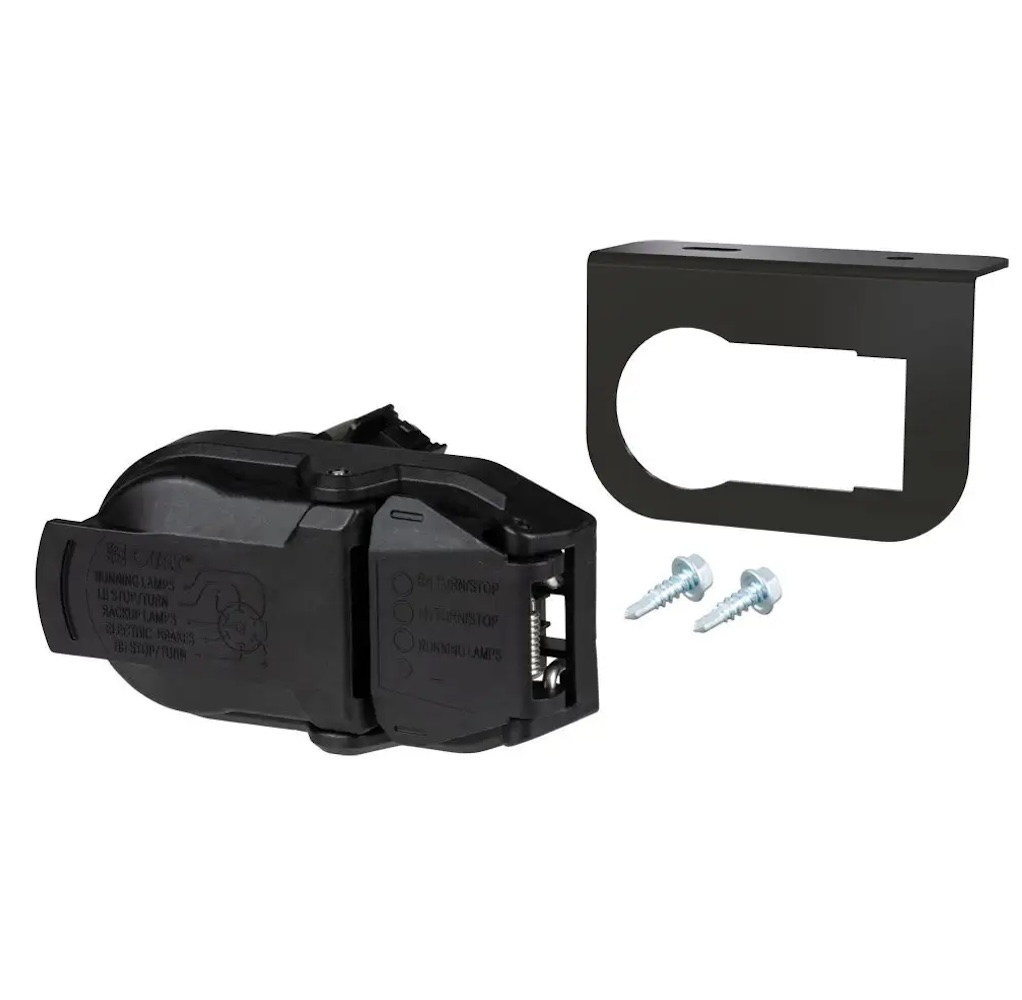 7-Pin Round + 4-Pin Flat Trailer Connector with Mounting Bracket for 2” Hitch Receiver