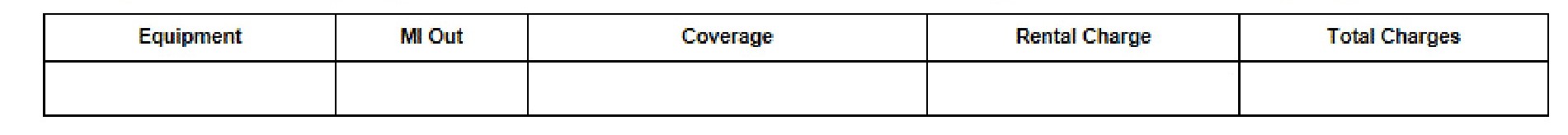 - Rental Charge: The rental amount charged based the equipment rented and the milage allowed.
